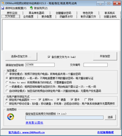 6、灵活的绑定选项,加密视频可以绑定主板、硬盘,显卡、网卡、U盘等;