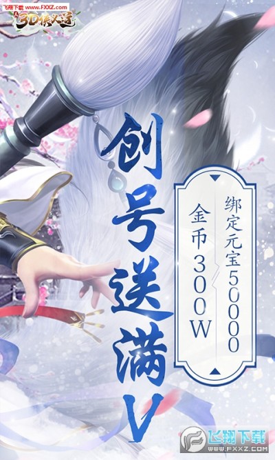 2、创号送满V,绑定元宝50000,金币300W