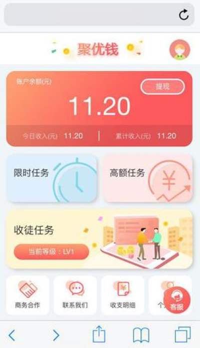 聚优钱是一款优质的赚钱软件,软件中提供给用户不同类型的任务。通过点击试玩、转发活动、邀请好友等等不同的方式来赚取自己的佣金吧!适合有闲暇时间的上班族以及宝妈,感兴趣点击下载体验吧!