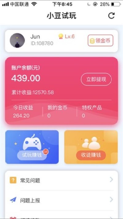 小豆试玩是一款全新的试玩应用赚钱app,里面超级多的试玩任务,都是实时刷新,帮你让你时时刻刻都有任务可做,只需要打开app一键注册登录即可开始领取佣金任务,满10元就可以提现到微信了哟,申请1-2个工作日就会到账,全新的app等你来享。