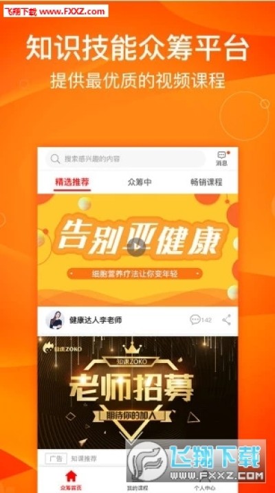 知课ZOKO软件是一款知识技能学习类的平台,同时也是一款技能众筹平台,人人都可以来当老师,在知课ZOKO软件中用户只要有技能你可以可以成为老师,也能在线学习技能等等!