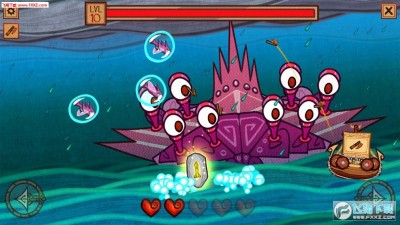 玩家需操控船只,在波涛汹涌的海面上左右摇摆,发射武器攻击海怪的眼部,同时需躲避海浪及海鱼的攻击,直到海怪生命值为零,方可赢得战斗!