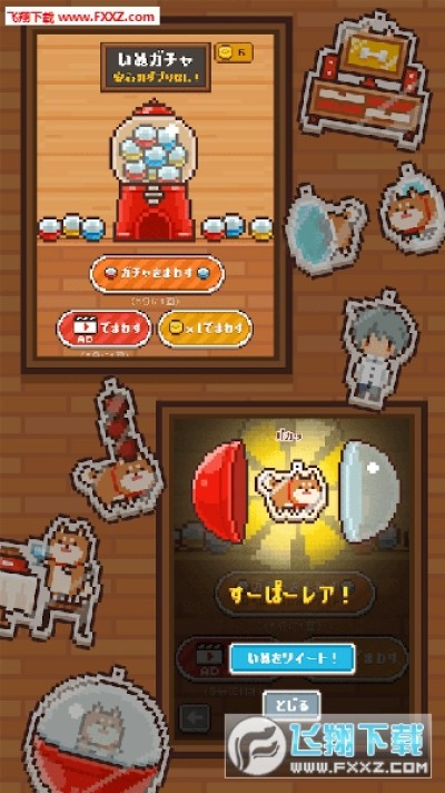 还包含收集要素,有各种狗狗的可爱像素图可以通过扭蛋方式获取
