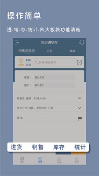 指尖进销存是一款操作简单,上手快,而且完全免费的进销存软件。您可以使用他进行采购管理,销售管理,库存管理,软件还会实时的统计您的数据,助您掌握生意动态。帮您轻松管理生意,提升工作效率!