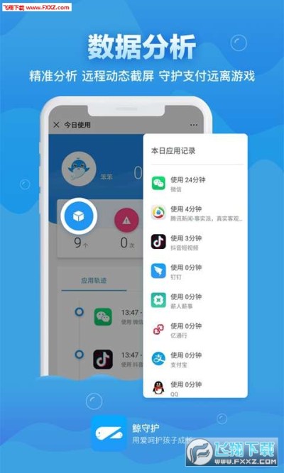 《鲸守护》是一款帮助家长远程守护孩子使用手机,培养孩子养成良好手机使用习惯,成长守护孩子的app.鲸守护的产品方向--以为孩子提供健康的手机使用环境,协助家长实时定位孩子的位置防走失,了解孩子的数字生活、帮助孩子培养健康的手机使用习惯,防沉迷手机,帮助妈妈安心。并通过合理设定孩子手机使用或使用应用的行为,达到守护孩子健康成长的核心目的。