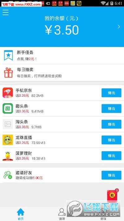 天天挣零花是一款非常好用的手机赚钱app,用户通过手机完成一些小任务就可以轻松赚取零花钱,新人注册还送红包,每天都有抽奖活动等你来参与,每天还可以进行抽奖,可以获得现金奖励哦,支持微信,支付宝提现,还有手机话费,qb充值等,快来下载试试吧!