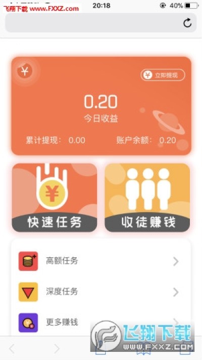 1、用户可以选择接任务赚钱,也可以收徒赚钱;
