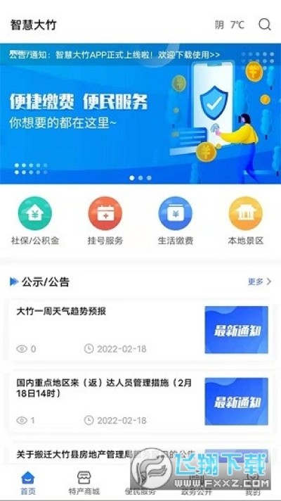 智慧大竹app是由大竹县经济和信息化局牵头,大竹云海智慧城市信息技术服务有限公司建设的线上便民服务平台,该app集生活缴费、挂号就医、便民服务、特产商城等便民功能于一体,纳入智慧城市建设体系。