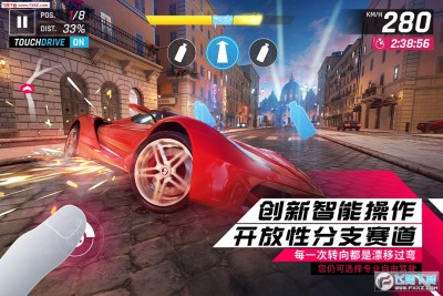 《狂野飙车9:竞速传奇》加入全新的TOUCHDRIVE智能操作模式,将帮助玩家简化转向操作,降低上手门槛。但对技术流玩家来说,仍可以使用经典的手动点触模式,或是重力感应模式。