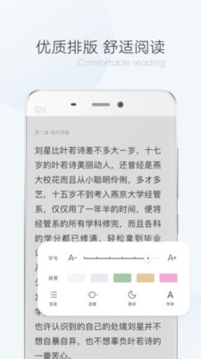 界面简洁、简化看书过程的繁琐操作,个性化阅读设置,为你提供更好的阅读体验