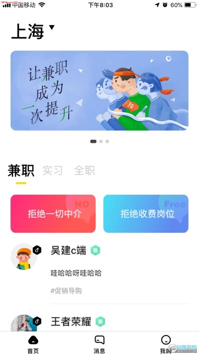 拒绝一切中介:兼职,实习,校招,线上兼职,打通人才与企业之间的沟通渠道,让企业招聘兼职人才高效、无障碍。让人才快速的找到兼职工作