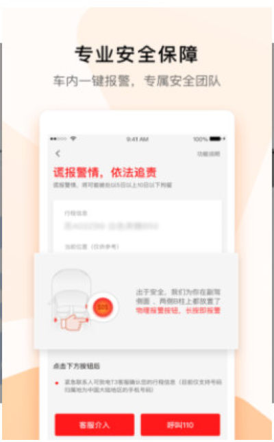 【自营模式 】所有出行车辆均为自营,高度定制、高标准车辆。专为网约车开发的车联网安全系统、统一管理的司机团队,为您提供“安全、便捷、品质”的出行服务。