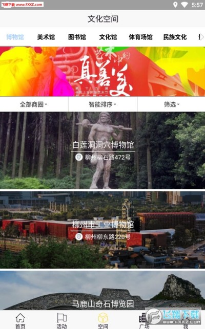 4、文化场馆:柳州各类特色文化场馆的位置、规模、布局、设施一目了然。通过“文化地图”,轻松找到你想去的场馆。想去哪里,一键导航;