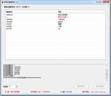 2、点击开始按钮,软件将查询账号昵称,并将结果实时显示在列表上