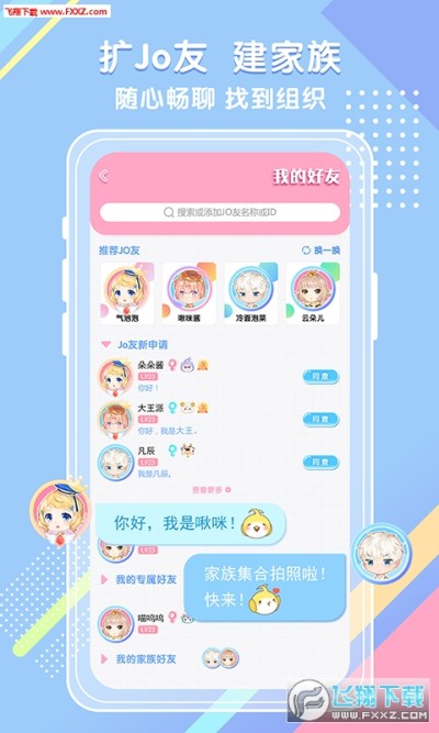 4、扩jo友建立家族随心的进行畅聊找到有爱组织。