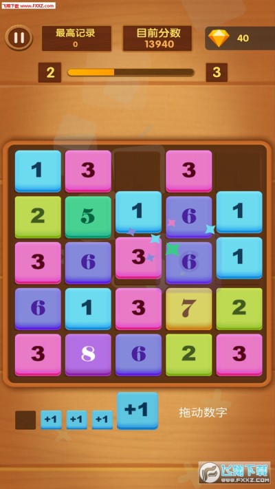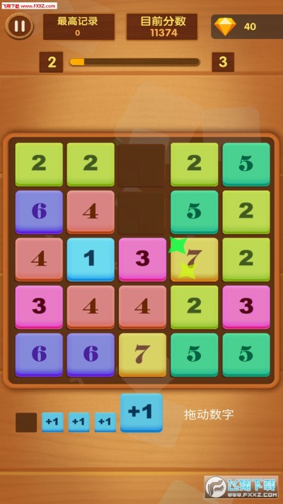 从下方将方块拖入方格,方块下落到底后3个同样的数字颜色的方块连在一起,则会消除,点击消除3个连在一起的同数字方块,就能获得更高的分数!