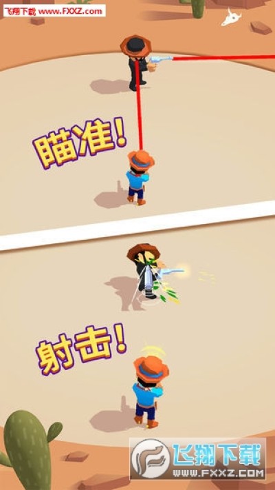 绝地枪王3D采用了西部牛仔式的设计,不是所有的世界都是那么有趣,决斗的世界不是那么的简单!需要精确的目标和角度来击倒敌人,如果当有人瞄准了你,你瞄准了下家这样的场景你会生存下来?