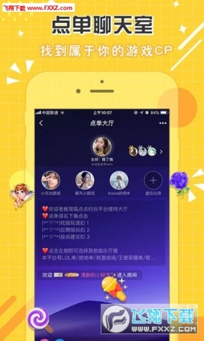 点点开黑app是一个很受欢迎的游戏社交平台,汇集了各种热门游戏的大神哦,不管你是喜欢吃鸡,还是喜欢王者,都有专属的开黑聊天室,王者手把手带你上分,感兴趣的小伙伴们,赶快下载点点开黑app体验吧。