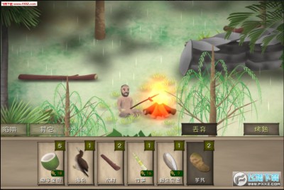 游戏中有不少投掷类工具,石头,竹叉,弓箭。有时候你会碰到一些猎物,如草原上的兔子,池塘里的鱼。你需要用你的投掷工具瞄准猎物进行猎杀,当然不同的猎物需要不同的投掷工具。