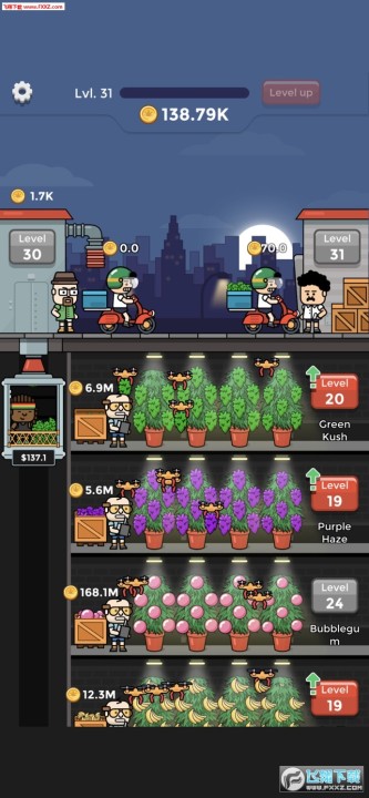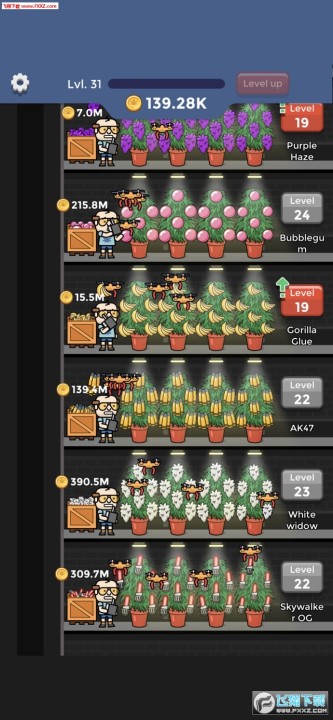 专门打造闲置休闲游戏的厂商Green Panda Games打造的一款以绿植为主题的模拟经营游戏,闲置绿植工厂(Weed Factory Idle)中玩家将成为绿植厂的老板,你要经营好绿树厂,培育不同的品种,防虫害,然后找销路等操作。