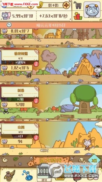 3.喵星人将从远古时代,一步一步的进化到现在的文明时代,从愚智未开,到懂得运用工具,再到刀耕火种,再到文明的时代,玩家将指引文明的进程,在各种大事件中做出抉择。