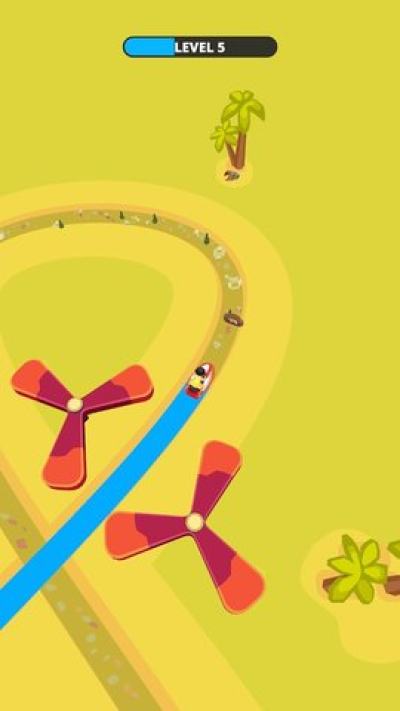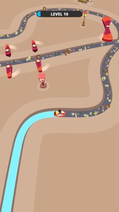 1、驾驶汽艇顺着河道前进,点击屏幕即可前进,松开停止