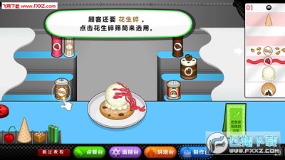 老爹圣代曲奇店开张啦,这次带来的是美味的圣代曲奇,其实就是曲奇饼干与冰淇淋的混合体。喜欢这个游戏系列的朋友们又可以动手制造食物了。这次的店员很有点可怜,先是被骗然后被老爹忽悠到厨房里制造食物,只能好好赚钱,当然游戏玩法还是老三样:接订单——造食物——客人评价(并给予小费)。