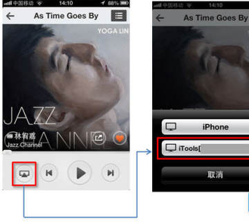连接成功后,电脑上的音响会播放iPhone上的音乐,iPhone将会被静音,请注意在iPhone上点击播放。AirPlayer会变成如下画面: