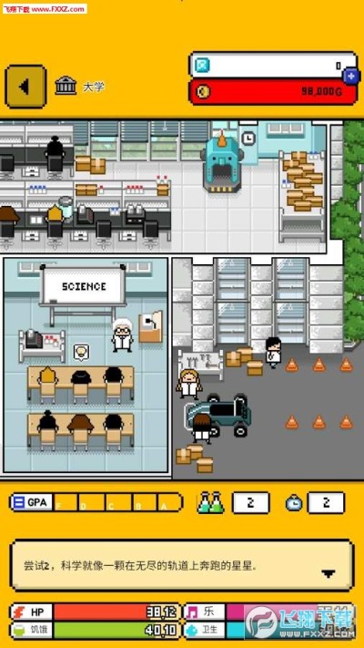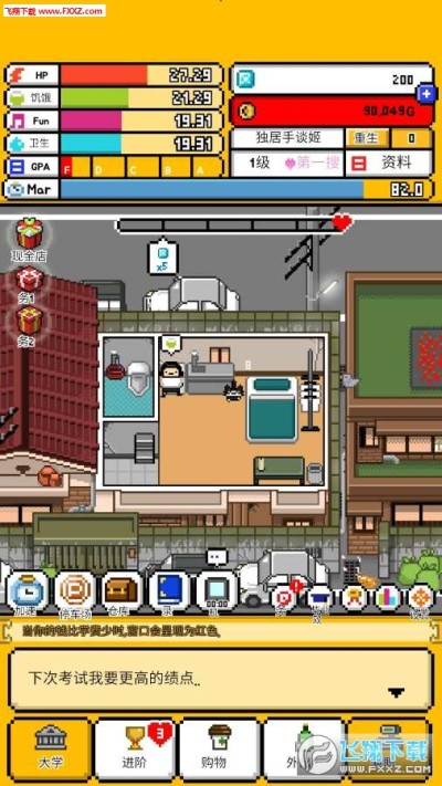 《五魁首我的留学生活2手游》是一款角色扮演类的游戏,经典游戏的续作,熟悉的像素风格,有趣的内容,赚取金币,保证角色的学业顺利完成,帮助角色顺利毕业,更多精彩内容等你来体验,赶快下载吧!