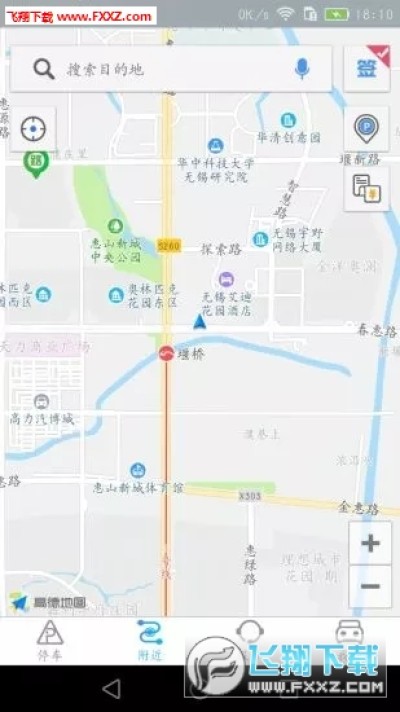 第一步:点击“附近”菜单,默认显示当前位置附近的停车场分布;