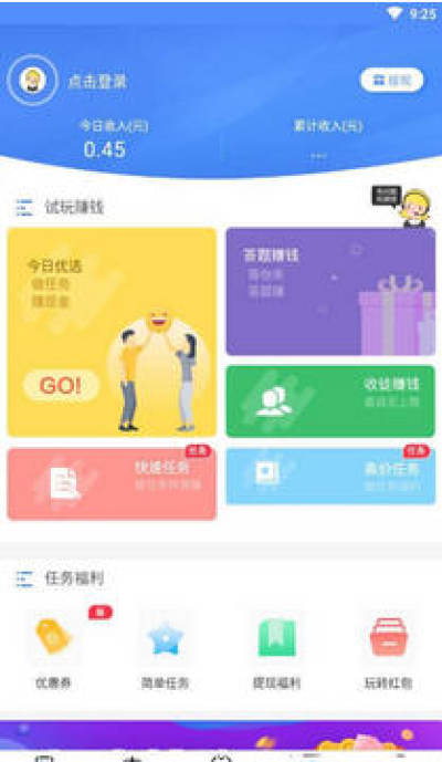 聚宝朋app官方版是一款可以赚钱的软件,主要通过试玩小游戏来获得奖励,软件内容有丰富的试玩任务可以领取,用空闲时间来完成任务可以获得奖励哦!喜欢就赶紧来下载吧!