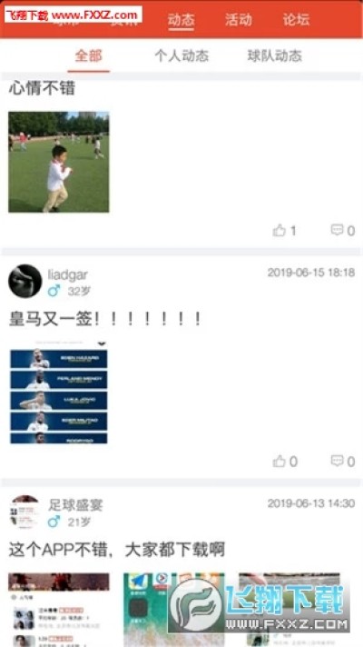 “社区”板块包括球市、资讯、动态、活动、论坛等内容。