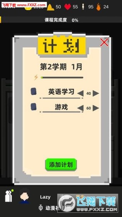 这是一款模拟大学生活的游戏,扮演一位大学生,体验大学的生活吧!