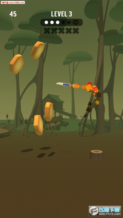 翻转飞刀游戏充满乐趣和兴奋和挑战特别是当你达到“轮胎”水平这是挑战达到它的高峰,你会发现很多乐趣和玩这个游戏的兴奋,这是一个真正的乐趣。那么你还在等什么,安装游戏并立即扔掉你的第一把刀!