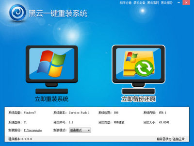 黑云一键重装系统,是一款免费在线一键电脑重装系统软件,简化重装系统步骤,无需电脑基础即可在线快速重装系统,一键重装XP系统、win7系统等全自动流程,傻瓜式一键自动安装xp win7 win8,重装只格式化C盘,安装前重备份桌面和C盘重要数据,其他磁盘数据不影响,还你一个全新、快速、安全、稳定系统、真正做到无人值守全自动电脑系统安装工具!