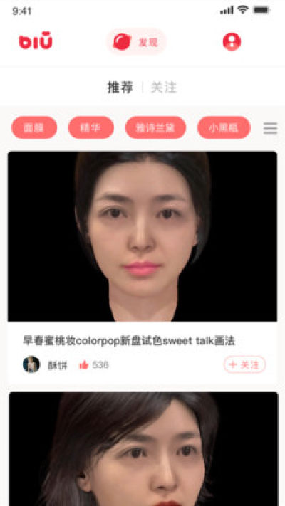 BiuMe app是全球首个人脸3D建模展示平台,为用户提供智能化的变美效果展示,能够全面的分析用户的脸部特征,根据个人特点,展示妆容和发型的效果,感兴趣的朋友们,赶快下载BiuMe app体验体验吧。