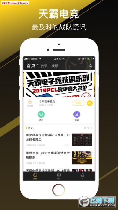 这是天霸电子竞技俱乐部官方授权APP,是每一位喜爱天霸的粉丝聚集地。第一时间掌握喜爱的队员实时动态,了解战队行程资讯,与喜爱的队员亲密互动。APP里拥有专属战队周边,每月有丰富的福利活动等等。还在等什么?赶紧下载,加入天霸电子竞技俱乐部的大家庭里来!