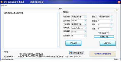咿呀多语言语音合成是一款绿色小巧免费语音合成工具,该软件目前还处于开发试用阶段,但不会影响使用,用户可以放心的使用,用户必须在联网的条件下才可以正常使用这款语音合成器。