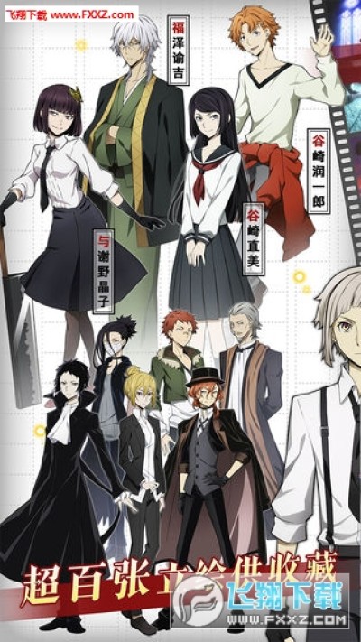 怀有文豪之名的游戏角色集结,无论是号称横滨F4的中岛敦、太宰治、芥川龙之介、中原中也,还是两大组织的头目福泽谕吉、森鸥外,还有泉镜花、江户川乱步、织田作之助、坂口安吾、费奥多尔等各种人气角色,你都有可能召集他们,成为队伍中的一员。