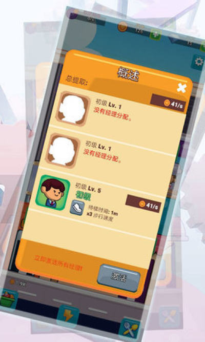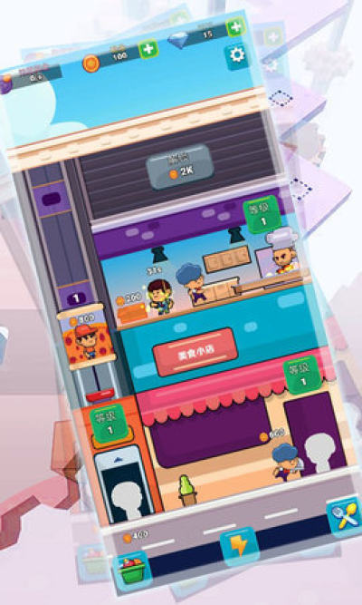 2、游戏的重点是赚取最大的闲置利润,成为一个餐厅大亨,建造一个自己的美食商业大楼