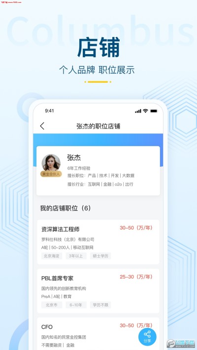 个人品牌店铺,精选优质职位展示,动动手指分享,快速获取候选人职位意向,足不出户,获客分析一步到位。