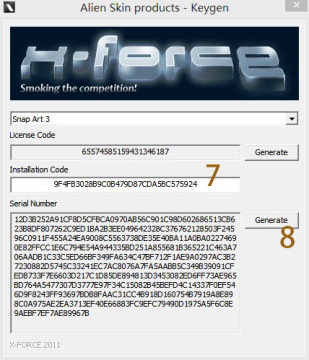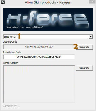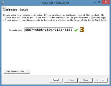 Step 2 -断开网络,运行注册机Keygen,选择 “Snap Art 3″(1),点击Generate生成Licenses Code(2),然后填入激活窗口对应位置(3),点击下一步;