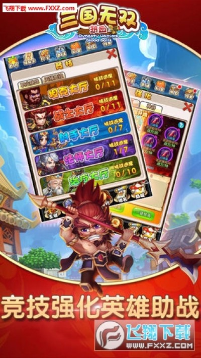 《热血三国无双手游》是一款策略类的游戏,经典的三国元素,熟悉的武将角色,简单的放置操作,全新的玩法内容,策略性的对战给你全新的体验,不断搜集养成,探索更多有趣的内容,喜欢的小伙伴可别错过了,赶快下载吧!