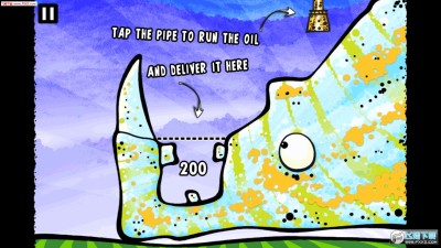 1.玩家在游戏中需要引导石油达到一定的容量,引导过程中需要用到各种工具,这些操作就需要靠玩家的智力发挥了,当石油容量达到吃石油的怪物口中虚线的时候就可以完成闯关;
