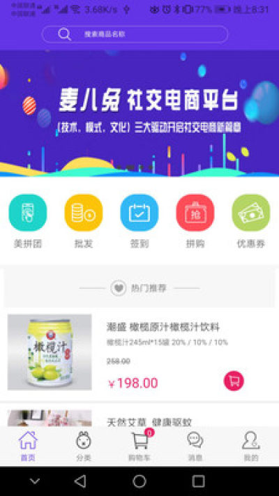 麦八兔商城是一家集生产,销售,社交娱乐电商为主的销售平台,其品牌主要以麦八兔,一点一度,天资凡态为主,产品覆盖,化妆品,白酒,红酒,服装等快消品为主,产品均由自主生产,麦八兔商城以平台的方式销售自主生产的品牌产品,以拼团,分销等模式发展分销商。 麦八兔平台充分理解执行党和国家的创业政策,鼓励大众创业,利用平台模式激励大众创业,为广大创业者提供广阔的创业空间。