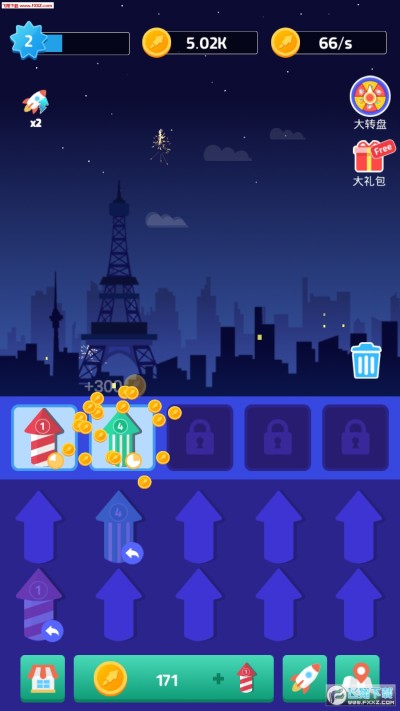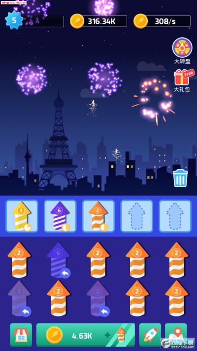 烟花公司游戏欢迎下载,烟花公司Idle Firework.Inc是一款经营类休闲游戏。游戏一开始玩家手上只有两只等级最低的烟花,通过合并得到更好等级烟花,燃放烟花即可赚取金币,用金币解锁更多烟花种类。