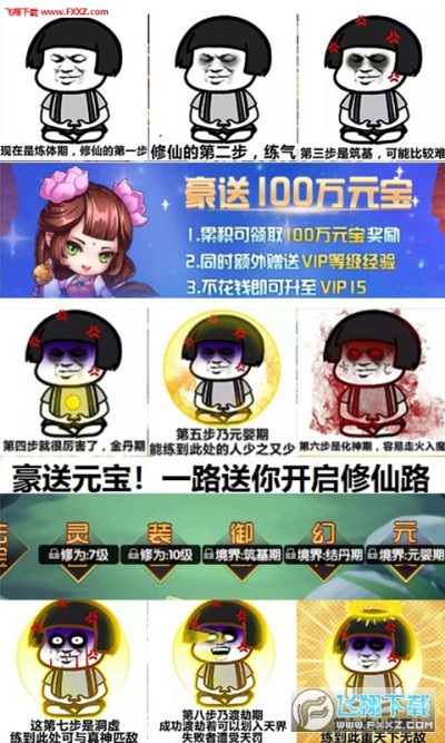 上线赠送VIP9,18888元宝,1000000灵气,1000000灵石