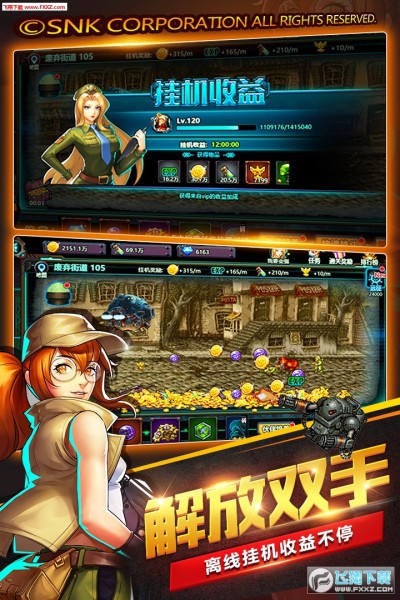 《合金弹头:集结》是一款获得SNK正版授权,由上海塔人网络科技股份有限公司开发的H5端放置类游戏,游戏以经典IP《合金弹头》的内容为依托,一方面复刻了原作的boss战,让玩家能体验到挑战boss的刺激;另一方面结合了放置类游戏的玩法,让玩家能够搜集养成原作中多种多样的兵种、坦克和怪物。