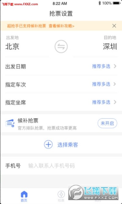 超抢手app是一个专业的火车票抢票软件,用户可以通过软件快速抢票,管理自己的车票信息,节假日回家不用担心抢不到票了!