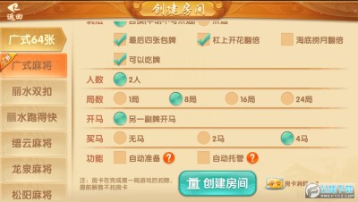 丽水广式64张app官方正版是一款结合了丽水当地规则和广式麻将的手机软就,还原了地道的丽水特色玩法,不仅玩法趣味而且可以匹配真人玩家,支持自主创建房间,自主设定规则和开局人数,十分自由,感兴趣的赶紧下载体验吧!
